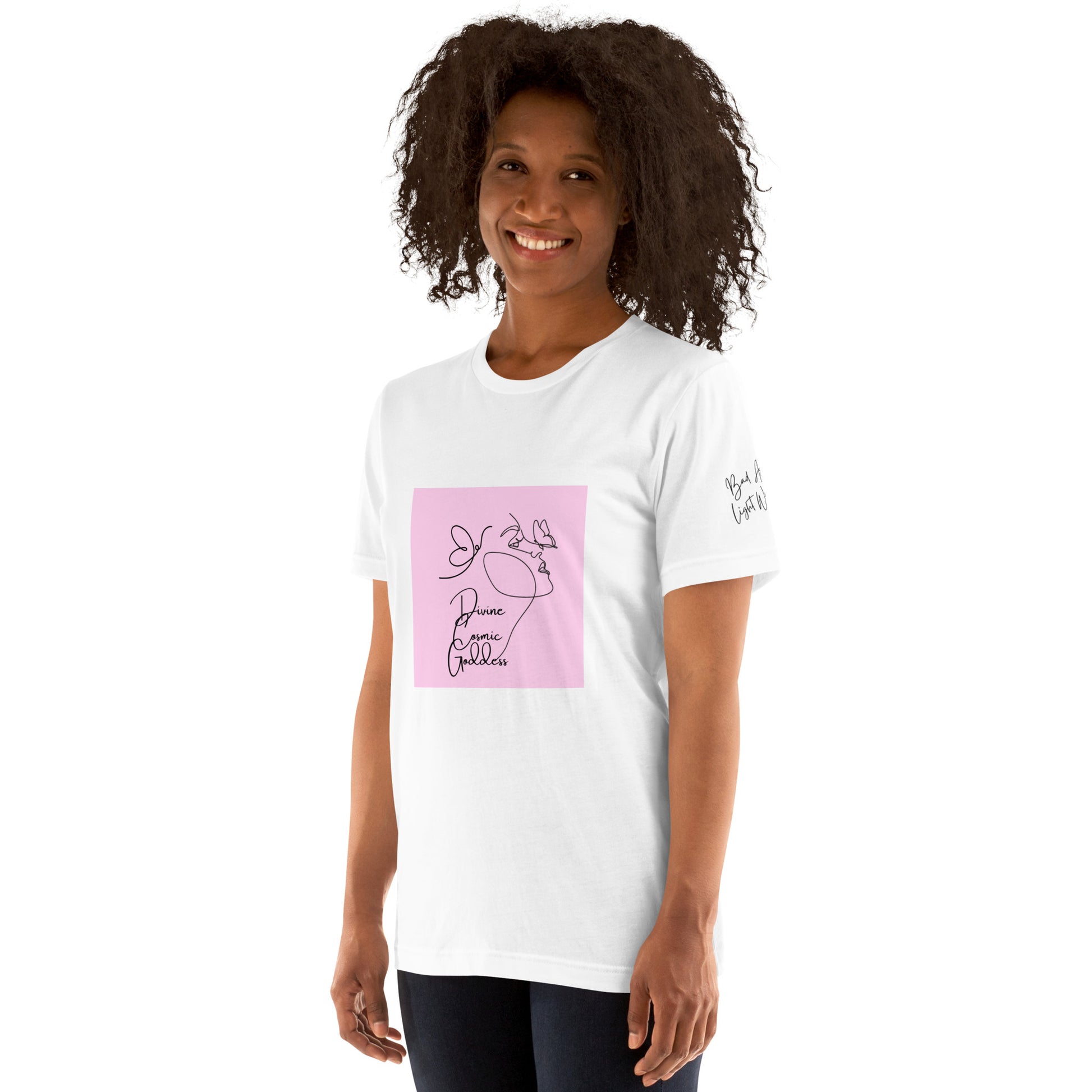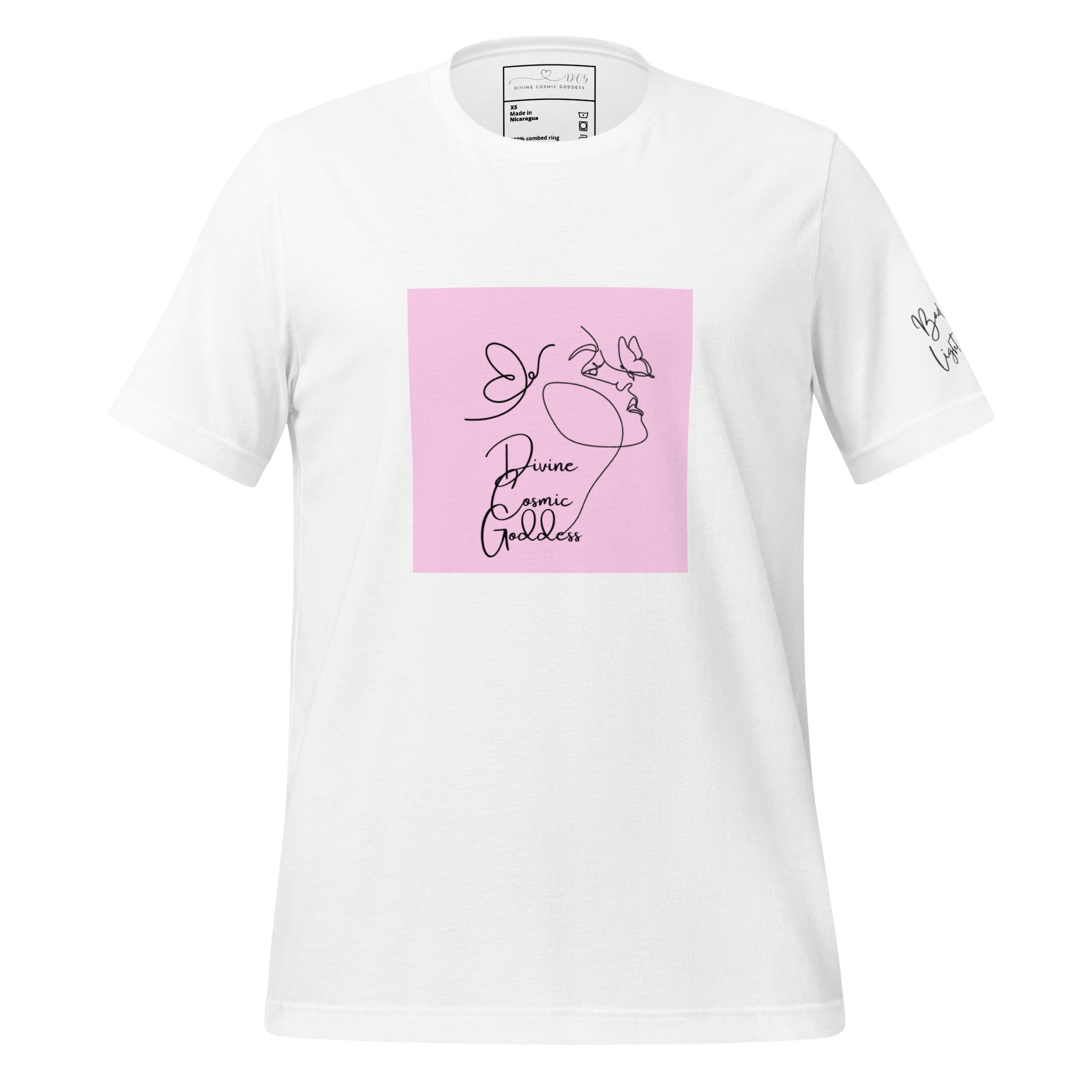Feel the gentle touch of this butterfly kiss illuminating your divinity! This t-shirt is everything you've dreamed of and more. It feels soft and lightweight, with the right amount of stretch. It's comfortable and flattering for all.